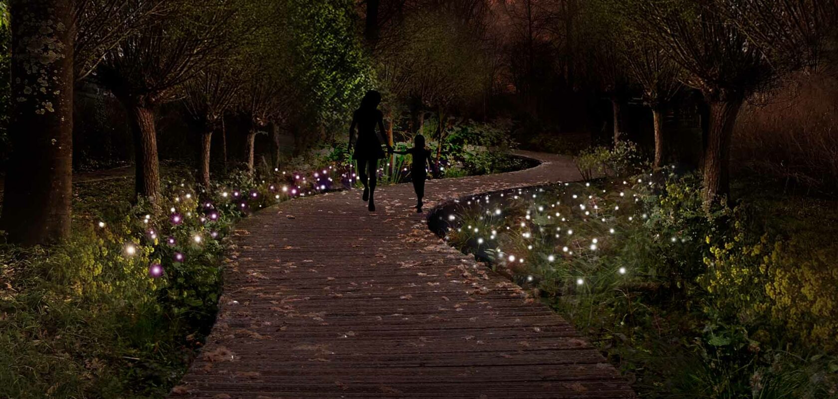 Ermi: “Zeker! Daar draait het idee ‘Living Light’ om. Zo wordt een park een magische plek: groen, interactief en self-supporting. Het principe van Living Light draait om planten die elektriciteit genereren. Deze planten reageren op hun omgeving en dus op de aanwezigheid van mensen, de bezoekers van het park. Kleine lichtjes, die hun voeding halen uit de elektriciteit genererende planten, leiden je zo door het park. Rotterdam is de eerste stad in de wereld waar dit park gerealiseerd is. Het ‘park van morgen’ is in 2019 aldaar geopend en gerealiseerd. Het 35 meter lange pad in het park is omgeven door de e-planten.”