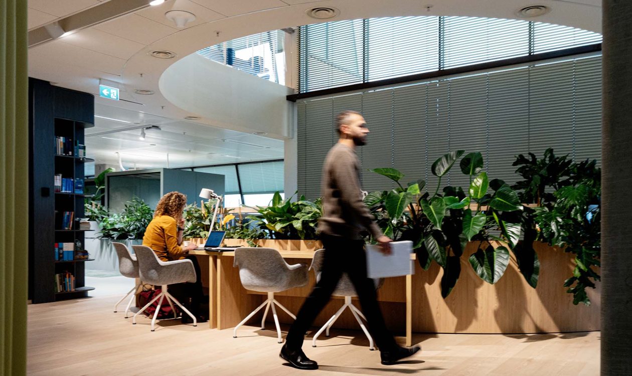 En op de eigen kantoren loop je als collega ook niets mis. “We zijn onze kantoren zelf opnieuw aan zoneren en inrichten. Elke vierkante meter pakken we grondig aan om van iedere locatie een plek te maken waar collega’s willen werken en gezond kunnen werken. Zo krijgt groen bijvoorbeeld een uitgesproken plek. Planten hebben veel voordelen op het gebied van gezondheid en productiviteit.”