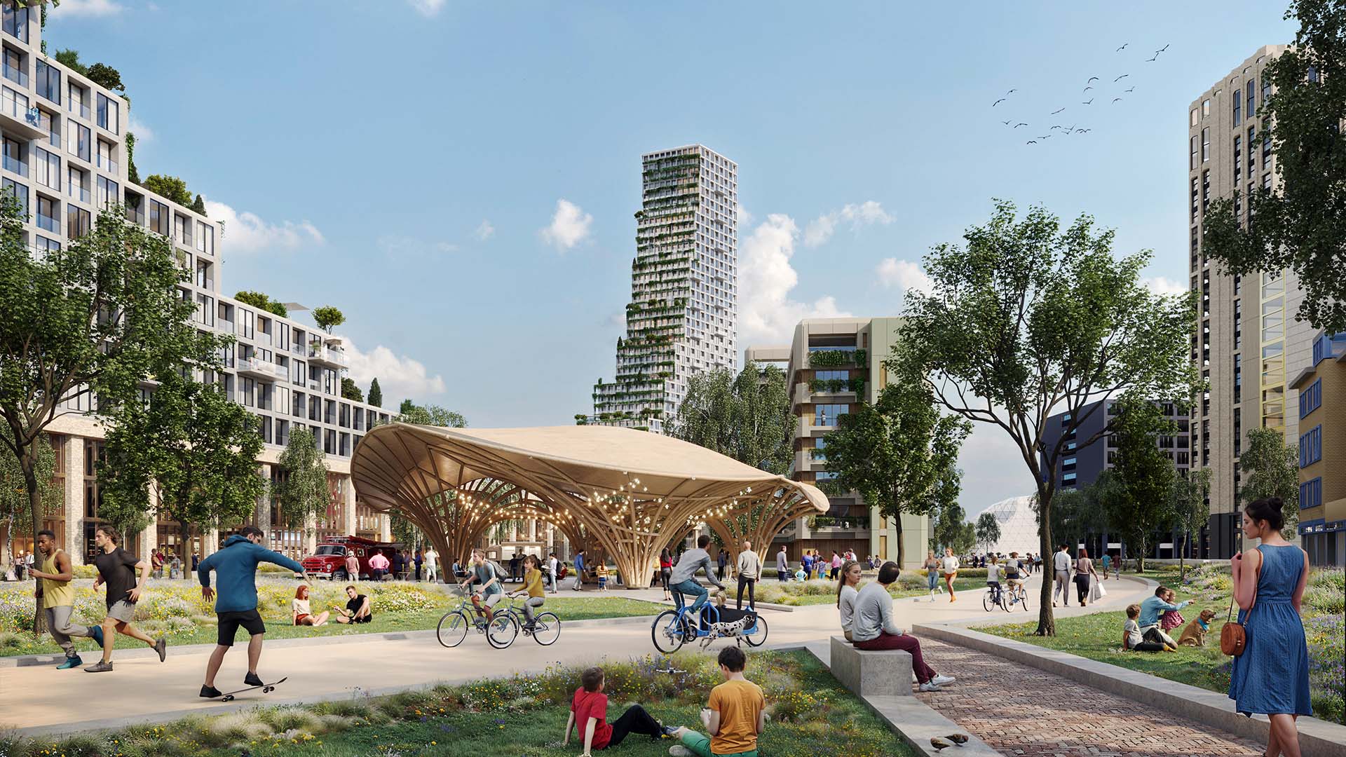 Als bureau gevestigd in Eindhoven merken we dat de verbinding van de binnenstad naar Strijp-S niet optimaal is en dat mensen niet graag in dit overgangsgebied verblijven. De stedenbouwkundige visie bestaat uit een groenstructuur van de Emmasingel tot aan de Glaslaan waarin verschillende stepping stones gelegen zijn. Dit zijn pleinen, paviljoenen en gebouwen, allen erop gericht om de verblijfskwaliteit in het gebied te verbeteren. Door de auto uit het gebied te weren en een langzame verkeersroute in het groen te introduceren, geven we de verbinding naar Strijp-S meer kwaliteit voor de voetganger en fietser.